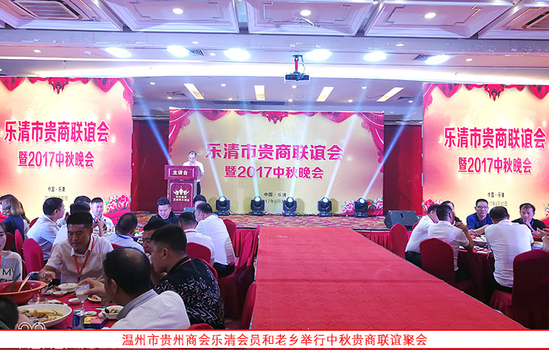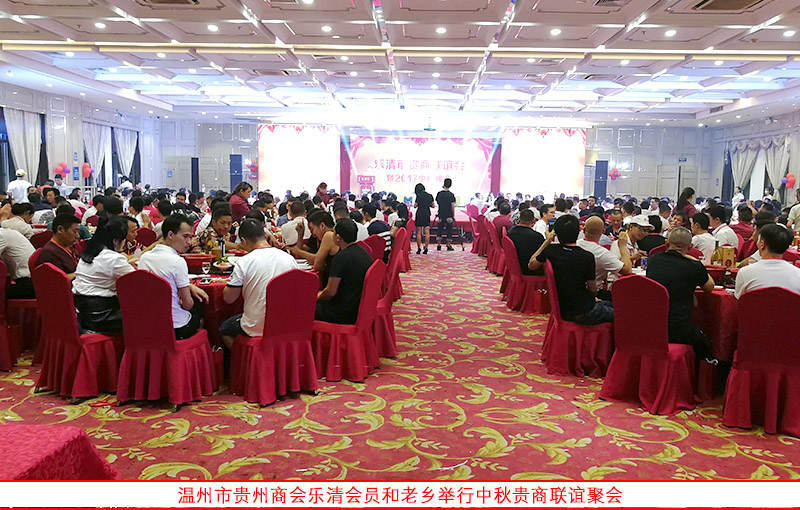 乐清贵州籍老乡于2017年9月30日晚在柳市镇夏威夷酒店举行欢度中秋贵商联谊聚会,来自贵州籍在乐清经商和务工的300多位老乡欢聚一堂,共叙乡情,共谋发展。温州市贵州商会常务副会长陈乾、陈庆涛,副会长张天刚、安桑田、田维刚、秘书长杨国勇、执行秘书长、办公室主任等代表商会参加联谊活动,永嘉乌牛同安医院的蒋董事长和王院长、乐清农商行的经理等也参加活动。温州市贵州商会给乐清这次老乡联谊聚会活动发来了贺信。