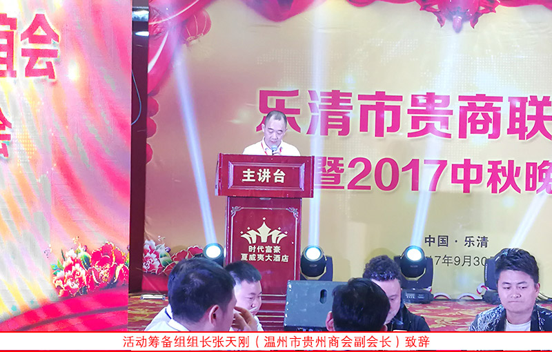 这次乐清老乡联谊聚会,取名为“乐清贵商联谊会”,由温州市贵州商会副会长张天刚等商会会长们和理事、会员、老乡代表等筹备组织举办,筹备组组长张天刚致辞,他说举办老乡中秋聚会活动,出发点是团结乐清的贵商和老乡,加强联络联谊,增强在乐清老乡凝聚力,共图发展。同时宣传商会,带动更多贵商参与温州市贵州商会。借此机会代表商会祝老乡们中秋快乐,合家生活工作幸福!