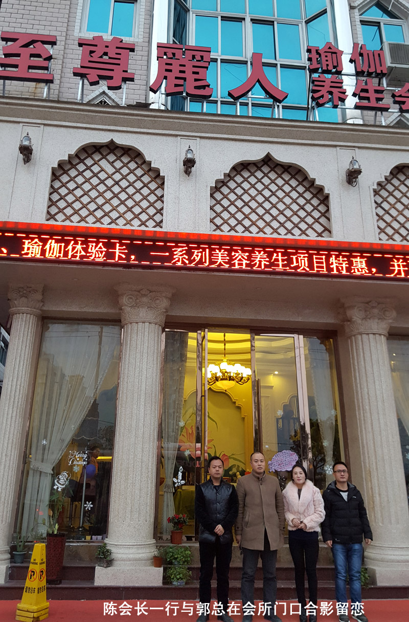 为了进一步加强商会与会员企业的沟通与交流,充分了解商会会员企业的情况,更好地为会员企业发展排忧解难,12月23日,温州市贵州商会副会长陈庆涛在会员毛永福和秘书处工作人员的陪同下到理事单位乐清市至尊丽人美容养生会所调研,至尊丽人美容养生会所总经理郭红艳对陈会长一行的到来表示热烈欢迎。